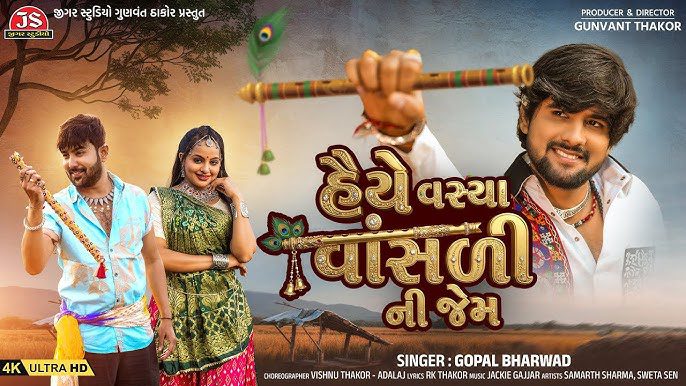 HAIYE VASYA VANSALI NI JEM LYRICS IN GUJARATI: Haiye Vasya Vansali Ni Jem (હૈયે વસ્યા વાંસળી ની જેમ) is a Gujarati Romantic song, voiced by Gopal Bharwad from Jigar Studio. The song is composed by Jackie Gajjar, with lyrics written by Rk Thakor. The music video of the song features Samarth Sharma and Sweta Sen.
