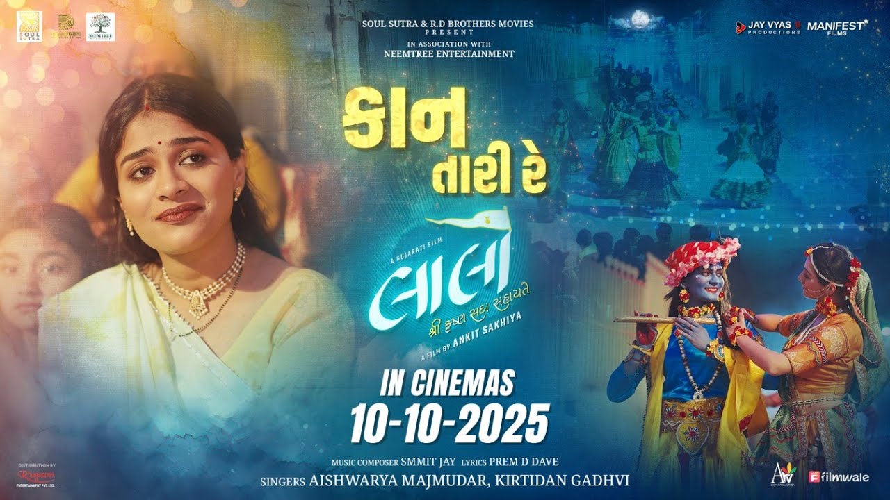 LYRICS OF KAAN TARI RE IN GUJARATI: "કાન તારી રે", The song is sung by Aishwarya Majmudar and Kirtidan Gadhvi from Gujarati film Laalo: Krishna Sada Sahaayate, directed by Ankit Sakhiya. The film stars Karan Joshi, Reeva Rachh, Shruhad Goswami, Anshu Joshi and Kinnal Nayak in lead role. "KAAN TARI RE" is a Dandiya song, composed by Smmit Jay, with lyrics written by Prem D Dave.