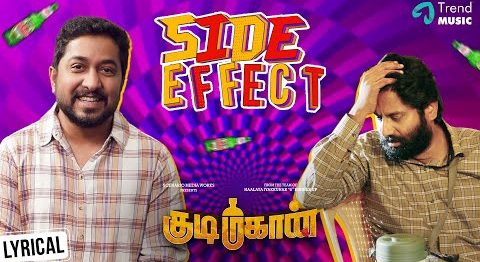'சைடு எபிபிச்ட்' | SIDE EFFECT SONG LYRICS IN TAMIL: The song "Side Effect" is sung by Vineeth Sreenivasan from Lovely Anand, Vijay Anand and Pattabiram Banu starrer Tamil film Kudimahaan, directed by Bharath Nellaiyappan and N Prakash. SIDE EFFECT song was composed by Tanuj Menon, with lyrics written by Sunil (Sunil - Sagar) and Nandhakumar Kazhimbram.
