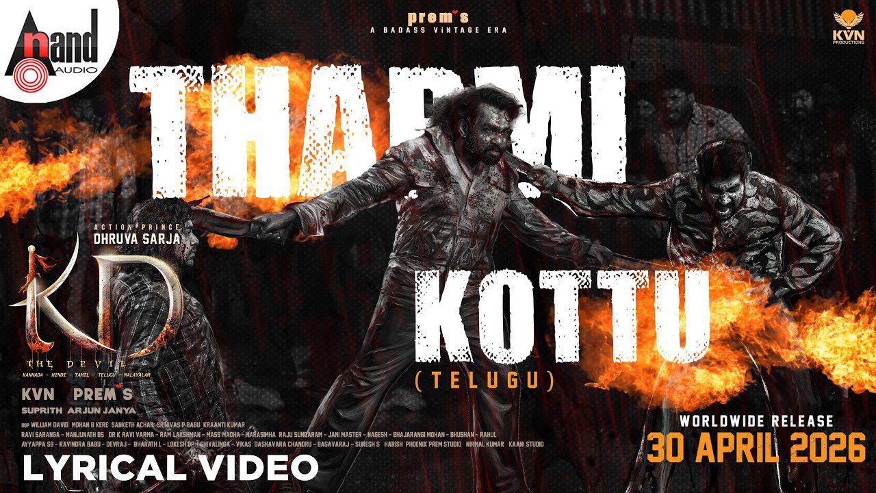 THARMI KOTTU SONG LYRICS: Tharmi Kottu Song is a Telugu song from the movie KD-The Devil starring Dhruva Sarja, Reeshma Nanaiah, Shilpa Shetty, directed by Prem. "THARMI KOTTU" song was composed by Arjun Janya and sung by Shankar Mahadevan, with lyrics written by Chandra Bose.