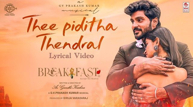 THEE PIDITHA THENDRAL SONG LYRICS: The song is sung by Rahul Nambiar and Saindhavi Prakash from the soundtrack album for the Tamil film Breakfast: Accept the Reality, directed by Ar. Gandhi Krishna, starring Introducing Raanav, Rosmin, Sampath Kumar and Kasturi. "THEE PIDITHA THENDRAL" song was composed by G. V. Prakash Kumar, with lyrics written by Vairamuthu.